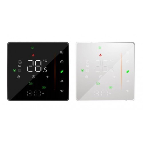 أكوبيلا BAC-006MZB هو ثرموستات ذكي لـ وحدات الفان كويل (Fan coil) يعمل بتقنية ZigBee 3.0، مصمَّم للتحكم في وحدات ذات أنبوبين (2-Pipe)، مع شاشة LED لمس رقيقة، دقة تحكم حراري ±0.5 °C، تشغيل جهد كهربائي واسع، مع حماية من انقطاع التيار، وتحكّم في سرعة المروحة والصمام إن كانت الوحدة تدعم ذلك. مثالي للغرف والمكاتب للتحكّم في التدفئة والتبريد براحة وبشكل ذكي