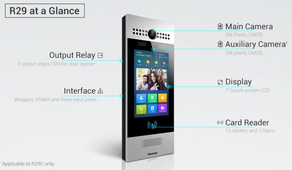 آكوڤوكس R29C – هاتف باب ذكي مزود بالذكاء الاصطناعي موديل R29C يعمل بنظام Android OS وشاشة لمس بحجم 7 بوصات وكاميرتين مدمجتين وتقنية التعرف على الوجه