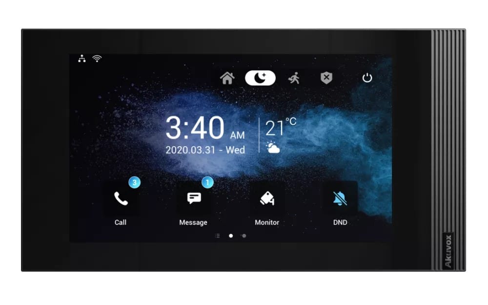 • وحدة شاشة داخلية في شقة أو مكتب ضمن نظام إنتركم/IP لعرض الزوار وافتتاح الباب من الداخل.