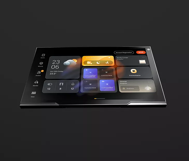 The device’s smart interface allows full control over lighting, heating, security, blinds, and more, with intelligent scene customization and scheduling for energy saving and user comfort.