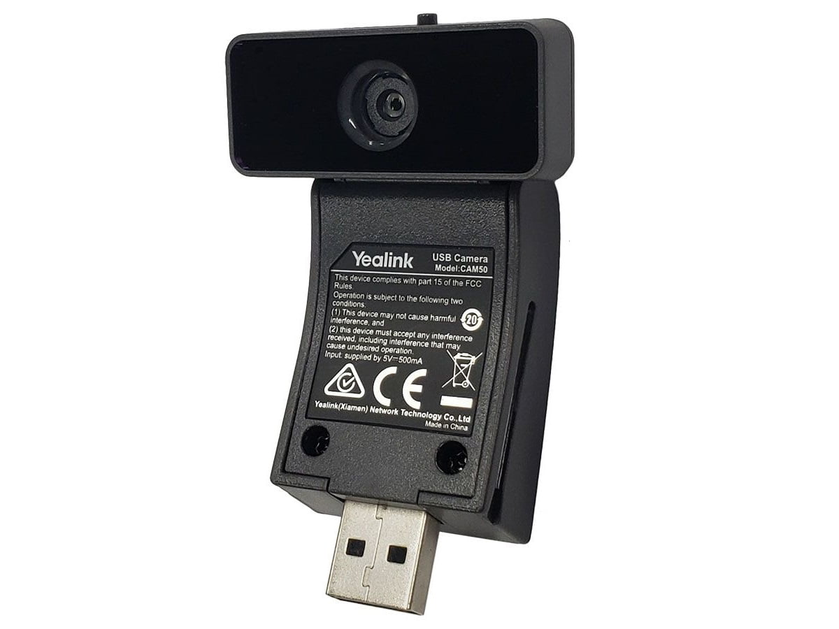 Yealink CAM50 2MP HD Camera, 720p video at 30 fps, compatible with Yealink SIP-T58A, SIP-T58V, and SIP-T58W phones, plug and play via USB 2.0, with a folding privacy shield and adjustable angle.