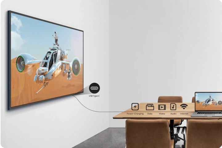 • مشاركة ذكية: مشاركة الشاشة لاسلكياً من حتى 4 أجهزة في وقت واحد أو من خلال كابل USB-C متعدد الوظائف للشحن وعرض الوسائط.